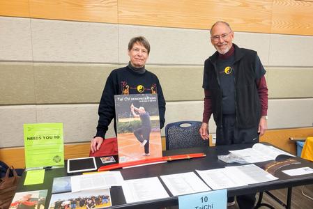 Tai Chi friends Pauline Jauquet and Mark Tomlinson welcomed people to an information table during EarthFest 2023, held April 22, at the University of Wisconsin Student Center.